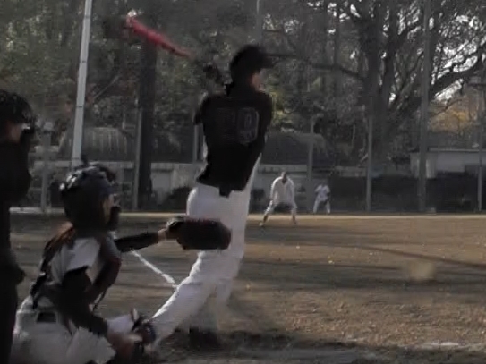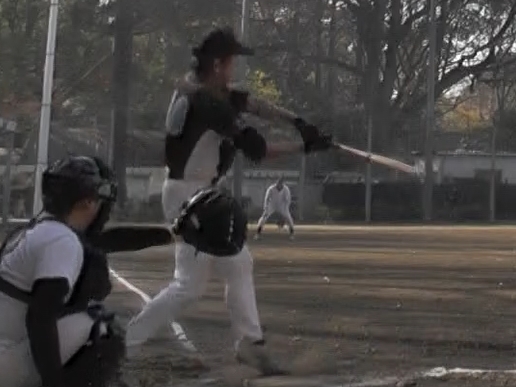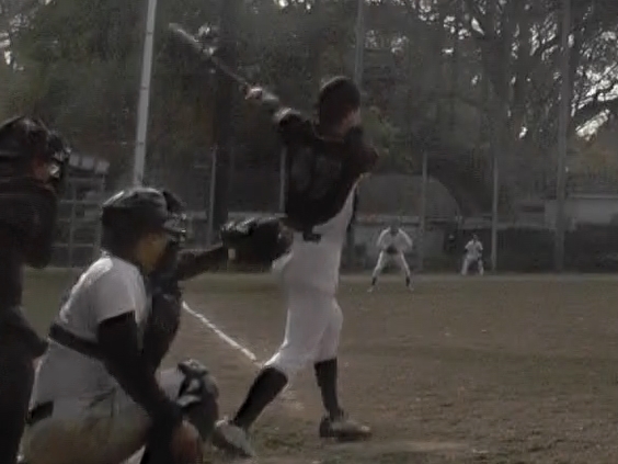 勢いに乗るハーツは3回裏、先頭の小西〔左〕が三遊間を渋く破るヒットで出ると、高松四球後、4番の丸山〔右〕が2者を返すライト越え特大二塁打を放つ。南海ハーツはこの日の納会で新監督発表予定だったが、実はスタメンにヒントが隠されていた。丸山にチームを託す気持ちから、打線の中心に据えたのだ。その期待に見事に応えた、圧巻の打席だった。