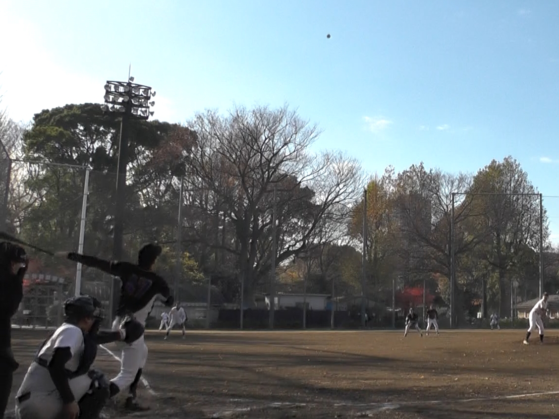 1回裏、2025年3割を達成した3番の高松〔左〕がボールをきっちり前で捉え、クリーンヒット。しかし後が続かず、無得点。しかし勝ち運を持っている高松は、2回表無死三塁のピンチで強烈なピッチャーライナーに素早く反応し好捕〔右〕、すかさず飛び出したランナーも刺し、ダブルプレーで切り抜ける。
