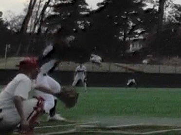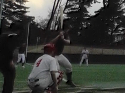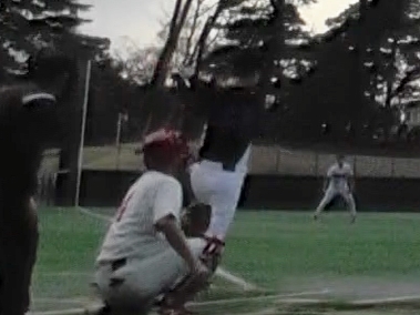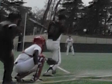 加藤は次の打者から三振を奪い、二死とする。そして柏木選手の放ったゴロは三遊間を抜くかと思われたが、その瞬間、サード高松のグラブがぐっと出て、どんぴしゃのタイミングでキャッチ〔中〕。すかさず一塁へ送球し、丸山もナイスキャッチ。このファインプレーに両チームから拍手が起こる。さすが、長年、ミスター南海ハーツとしてチームを引っ張ってきた男。Gリーグという負けられない試合で、この勝負際の強さこそ、ミスターたる所以だ。
