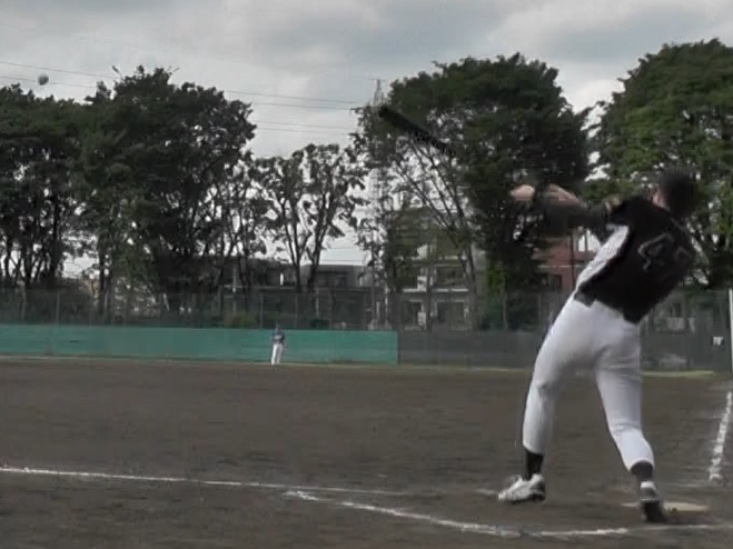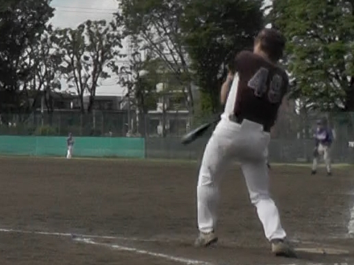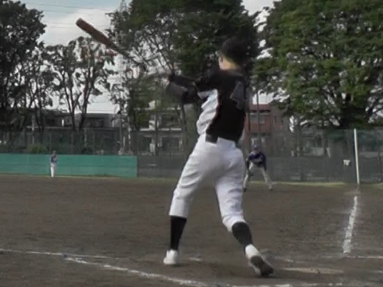 しかしハーツも負けていない。4回表、好投の宮本投手から先頭の小西〔左〕がレフトへ会心のヒットで出塁。続く兵藤〔中〕は三塁前への渋いゴロが内野安打となり無死一二塁。高松四球で満塁とすると、筒井〔右〕のショートゴロ間に1点を返す。そして次打者加藤の投ゴロがエラーを誘い、もう1点。ハーツは2-3と接戦に持ち込む。