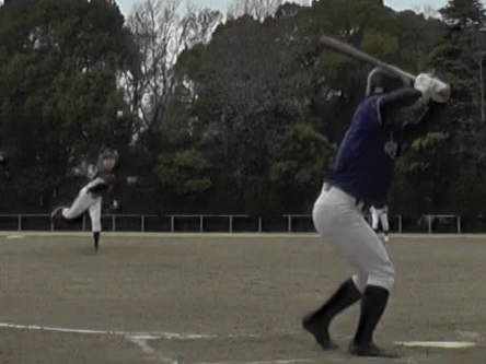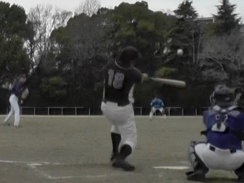 しかしハーツ打線は、好投手の前に沈黙。ようやく2本目のヒットが出たのが4回裏で、またしても筒井〔右〕。今度はレフトへ引っ張り、広角打法。ハーツでただ一人、タイミングが合っている。