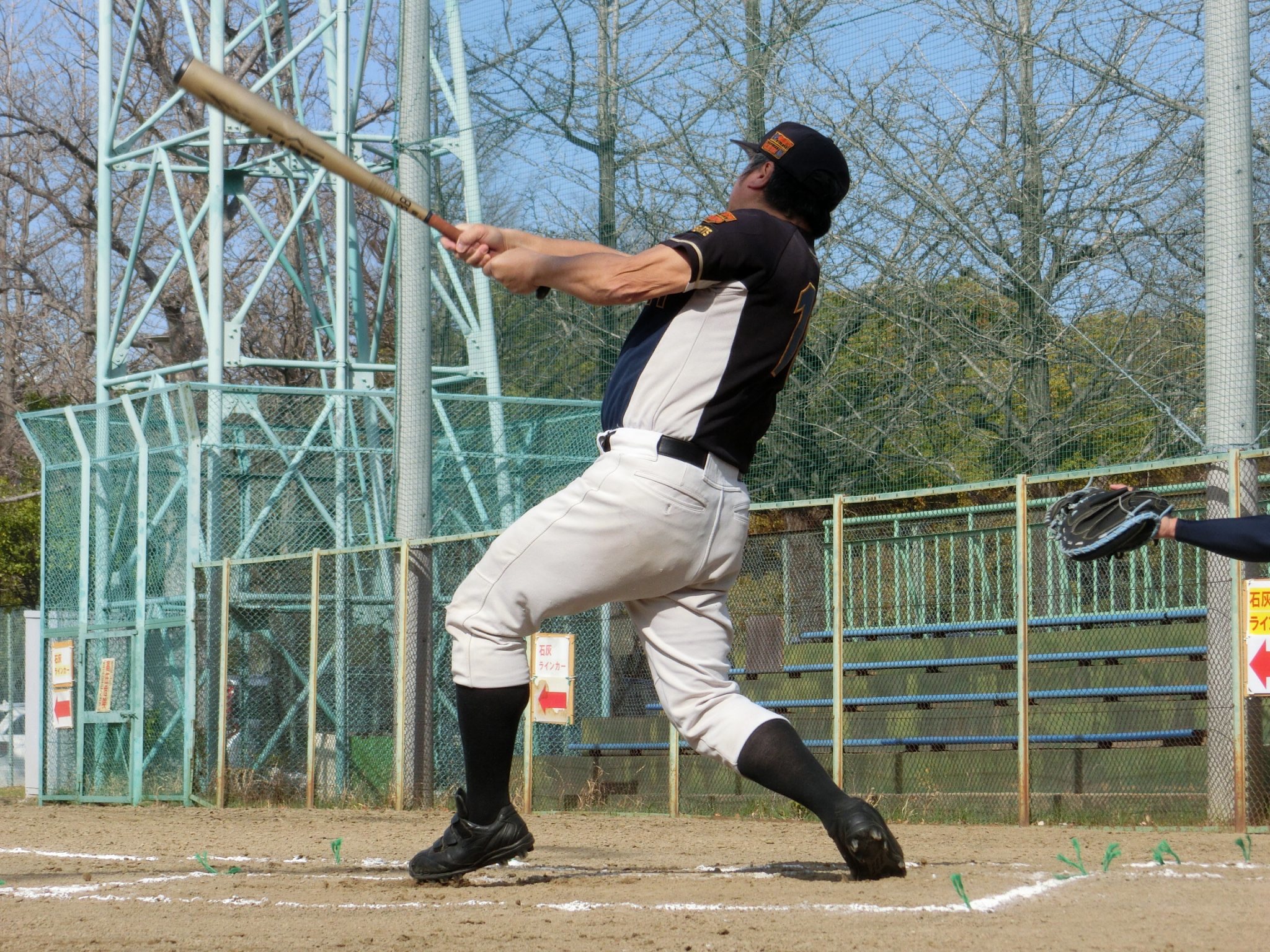 しかしハーツ打線は、好投手の前に沈黙。ようやく2本目のヒットが出たのが4回裏で、またしても筒井〔右〕。今度はレフトへ引っ張り、広角打法。ハーツでただ一人、タイミングが合っている。